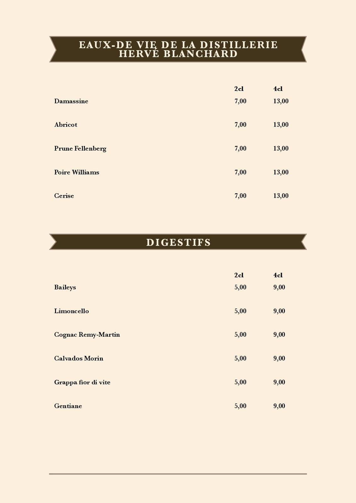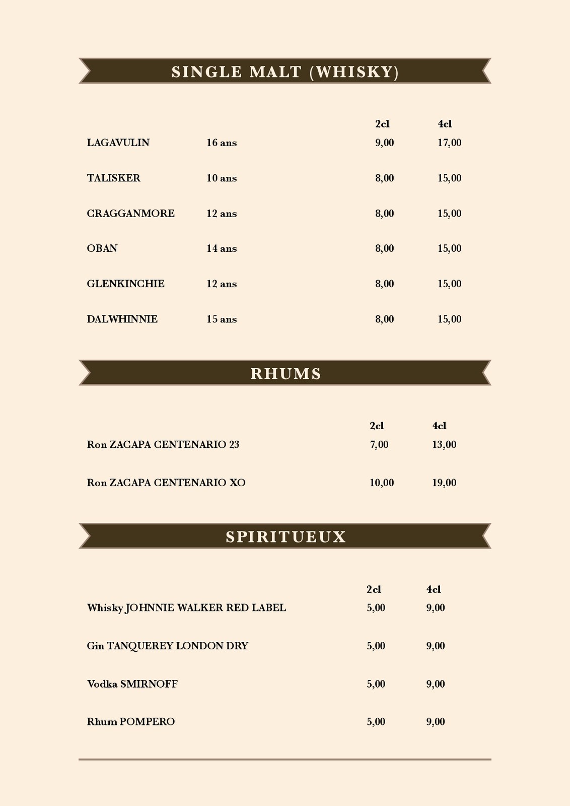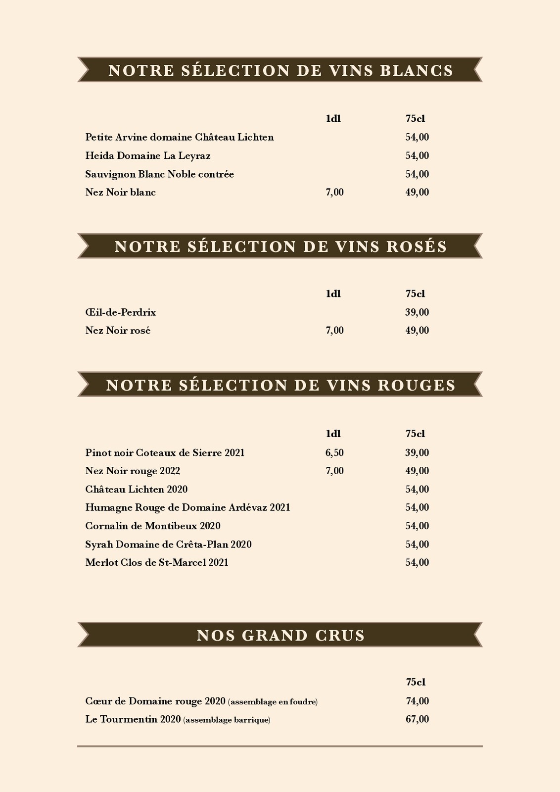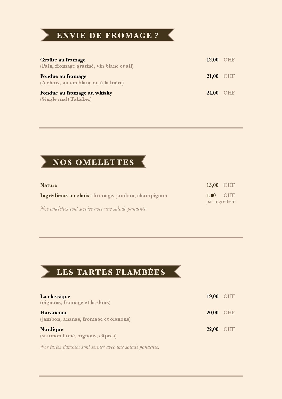 Cartes des Mets et des boissons du restaurant de la patinoire