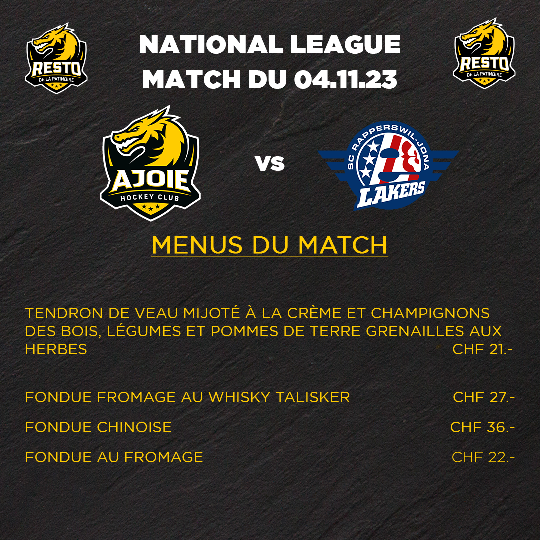Menu de la semaine du resto de la patinoire