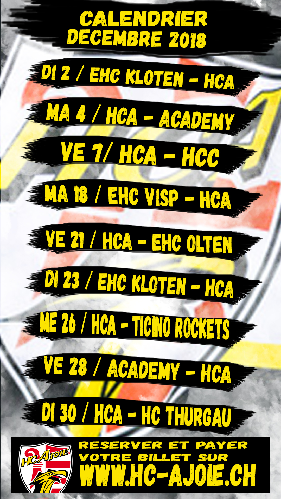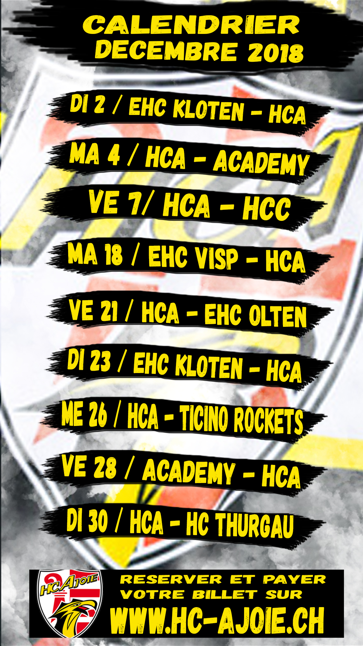 En téléchargeant le calendrier spécial natel du HC Ajoie, vous n’aurez aucune excuse à louper un match de votre équipe privilégiée !