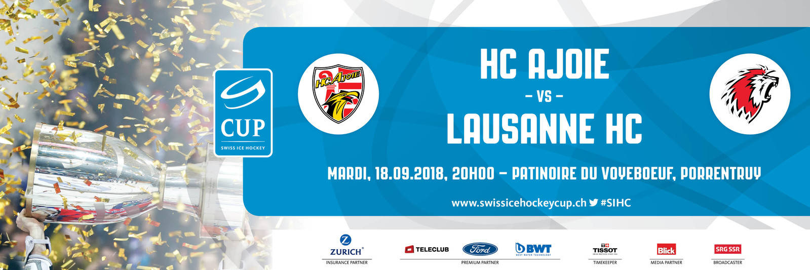 Le tirage au sort des 1/16èmes de finale de la Coupe Suisse, édition 2018/2019, a désigné le Lausanne HC comme futur adversaire du HC Ajoie. Cette rencontre, attendue et attractive, se déroulera à Porrentruy le mardi 18 septembre 2018 à 20h00 !