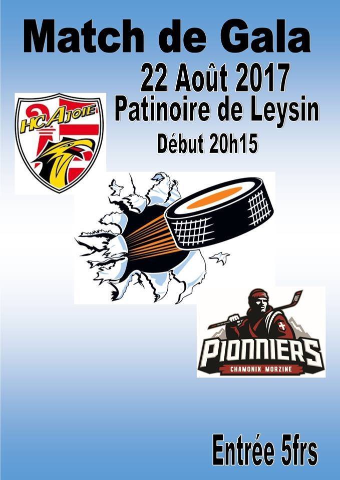 Le HC Ajoie rencontrera les Pionniers de Chamonix le mardi 22 août 2017 à la patinoire de Leysin. Le début de la rencontre est fixé à 20h15.