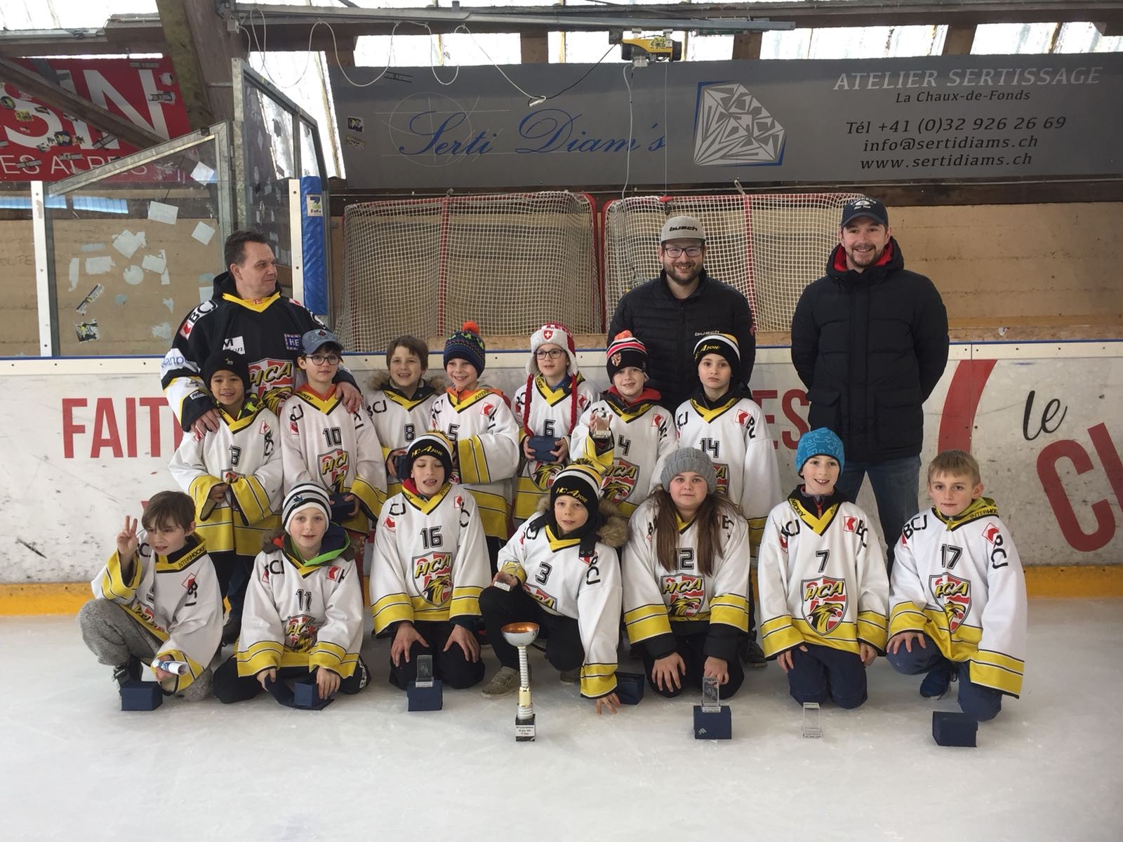 Les jeunes joueurs ont démontré un bel esprit d’équipe tout au long du tournoi, dans des matches où respect et fair-play ont toujours été au rendez-vous. La finale a été remportée par Lugano face à Bienne, ancien vainqueur des éditions 2016 et 2017. Bulach complète le podium en gagnant la petite finale face à Winterthur. Quant aux Bambinis ajoulots, après un première journée difficile ponctuée par 1 victoire et 3 défaites, ils ont su magnifiquement relever la tête en remportant leurs 2 matches du dimanche pour terminer en équipe au 7e rang.
